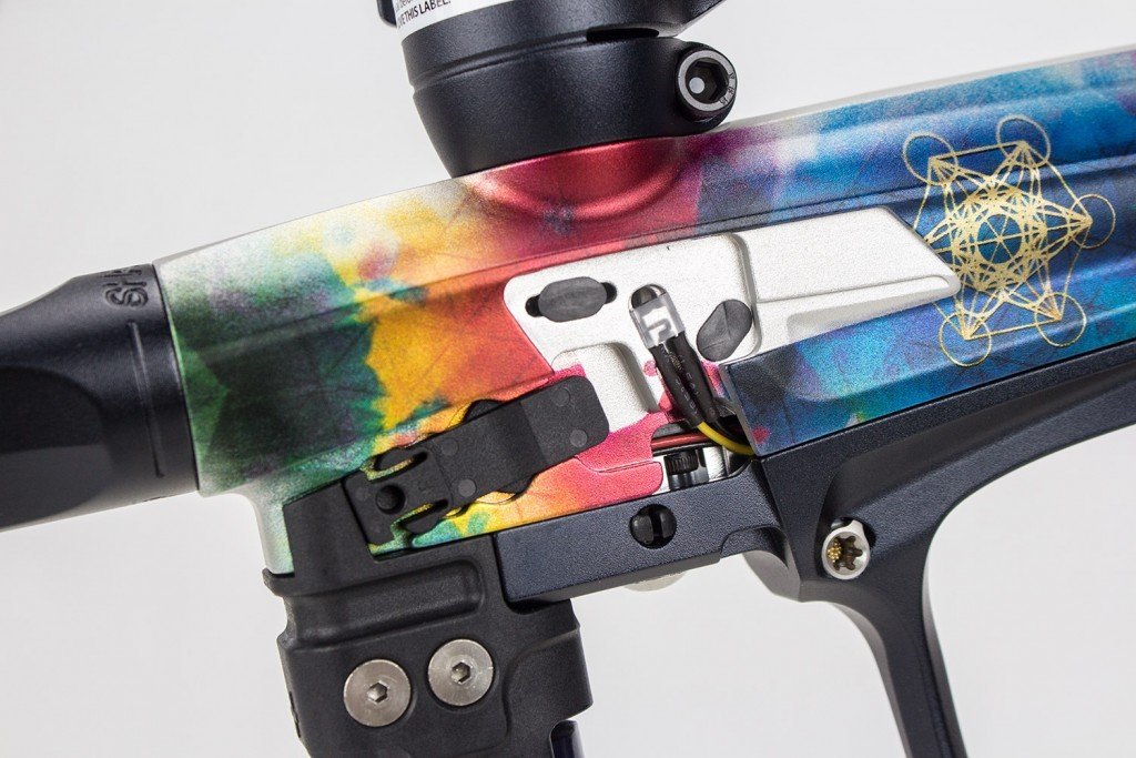 The reason for all the changes to the frame are pretty simple, Planet Eclipse integrated the SL5 regulator, in the place where the 9V battery used to be located. In order to eliminate any type of external hose Eclipse needed to figure out where to put the batteries (more on that later) and regulator. They opted to put a full-size regulator into the trigger frame. Full-size is key here as it will still perform just as well as the previous generation SL regulators. In order to accommodate the regulator eclipse had to widen the frame. The regulator is now adjustable through the bottom of the POPS on/off.