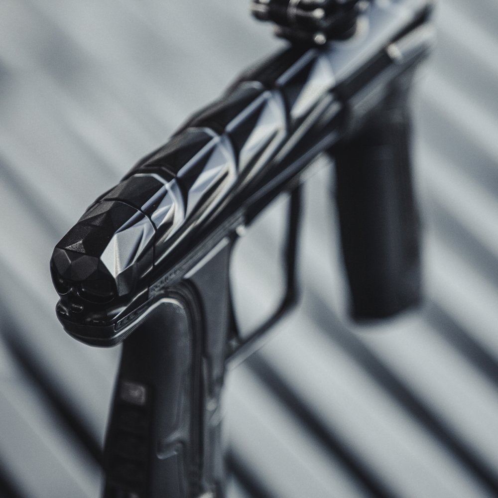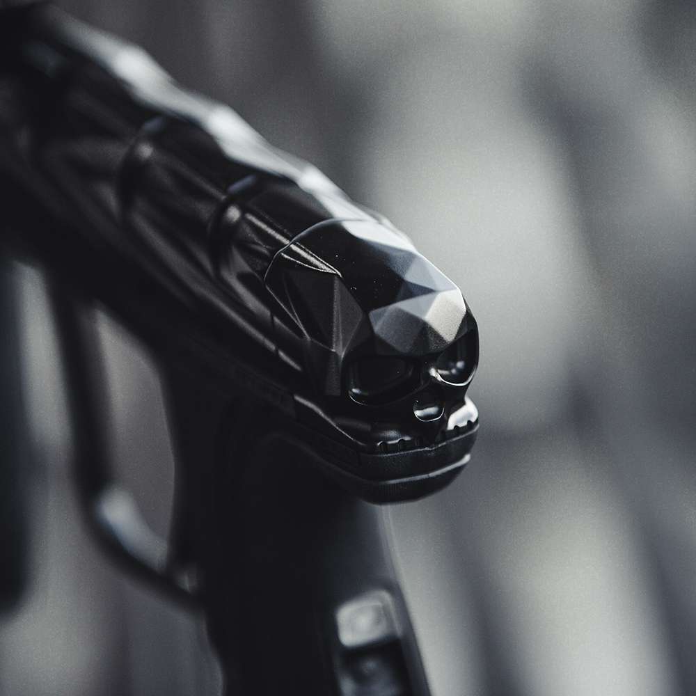 The milling on this thing is top-notch, some of the best I’ve seen on any gun lately. It’s got a unique look, with their signature skull at the back that fits the gun perfectly. These are listed on the Infamous website for $2,000, but that might be a temporary price. At the World Cup, lots of people were grabbing these because they look fantastic. There are five colors, but some are part-swapped. I think the black one will be the most popular because it shows off the milling the best.